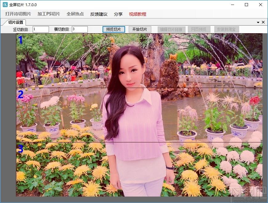 4、将图片添加到软件上后可以对图片横竖切片数目进行设置